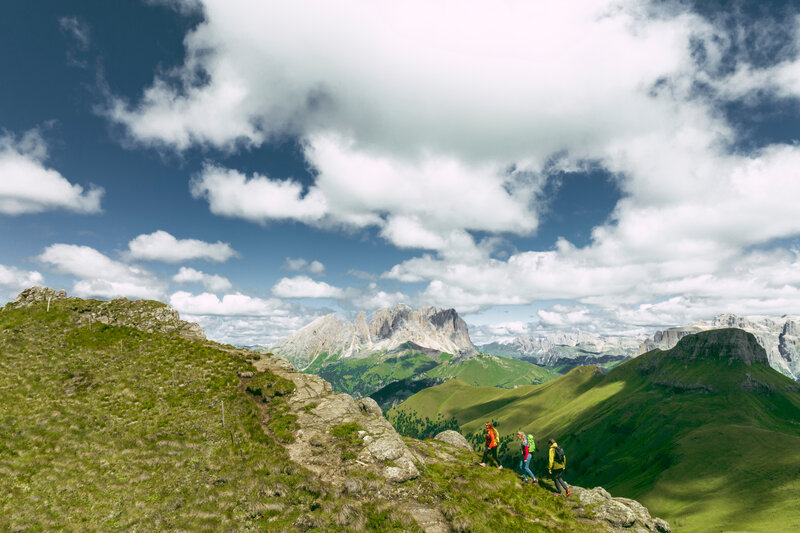 The Dolomiti Trek-King is available in four versions - Original, Short, Family, or Autumn - each offering a unique adventure. No matter how much time you have, there’s a route waiting to surprise you. Choose your challenge: 76, 51, or 39 km, to be tackled independently, at your own pace. Follow well-trodden paths or venture off to explore hidden gems, crossing ridges, forests, high-altitude meadows, waterfalls, and mountain streams. This is a self-guided journey into the heart of the Dolomites, where you set the rhythm and shape your own adventure. Along the way, you’ll walk in the shadow of towering legends: Marmolada, Catinaccio-Rosengarten, Sassolungo, Sassopiatto, and Sella.