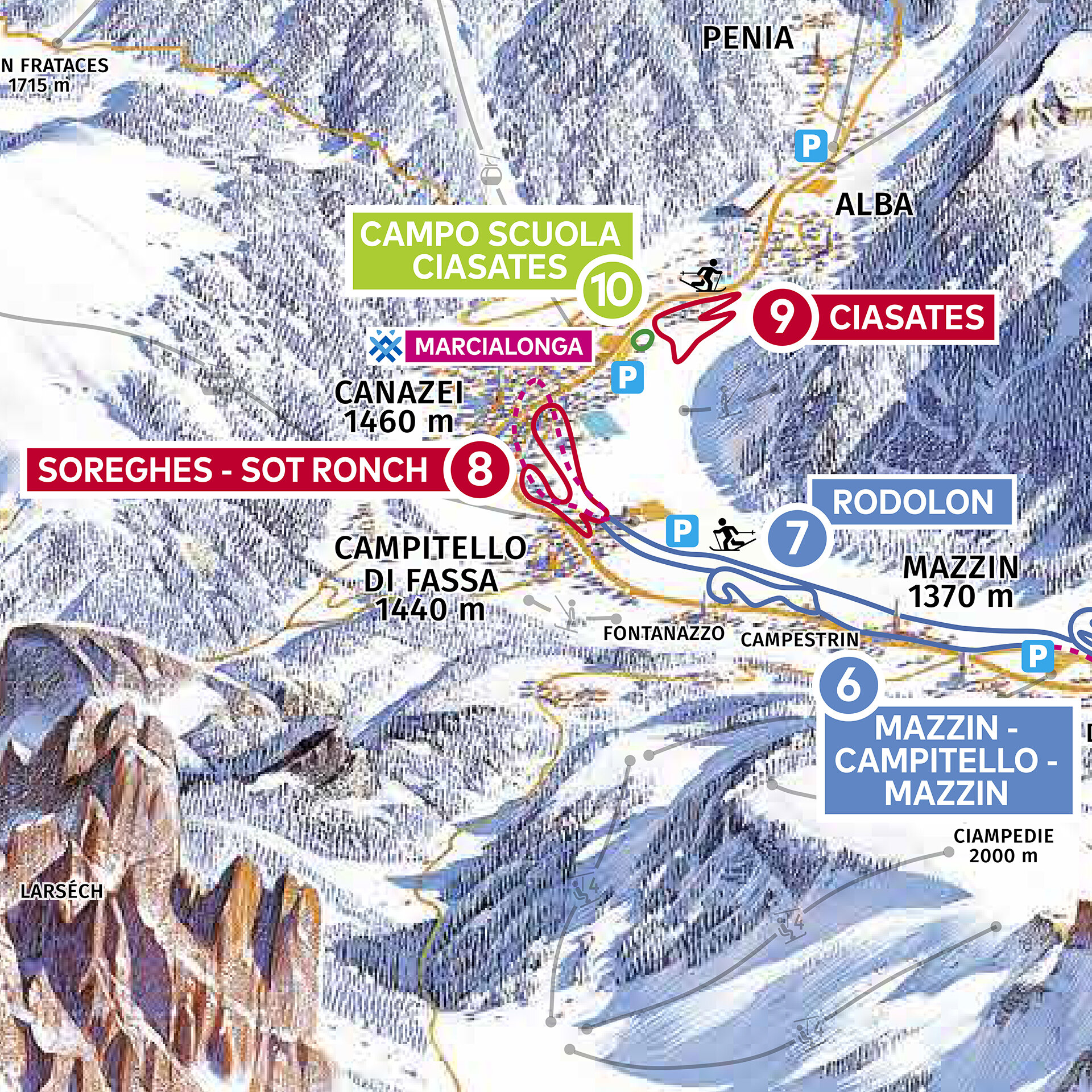 The ring and the school field "Ciasates" are reserved for Canazei ski school customers only.